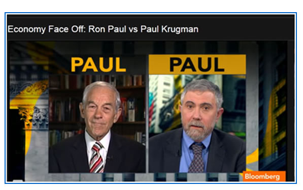 Vedran Vuk, Senior Analyst, Casey Research writes: A few days ago, Bloomberg held the debate many readers have been wanting for a long time: Paul Krugman vs. Ron Paul. To be fair, Ron Paul didn't have a slam-dunk debate moment – but neither did Krugman. Still, the fact that a medical doctor from Texas armed with a little Austrian economics and a lot of common sense can stand up to a Nobel-Prize-winning economist is impressive. If the roles were reversed and the conversation was on medicine, Krugman would have likely sounded like a village idiot in the discussion. In case you haven't already seen it, click on the frame below for the video.