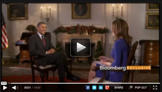 Bloomberg TV's Julianna Goldman spoke with President Obama today to discuss the fiscal cliff and his efforts to compromise with Republican leaders. In a lengthy interview in the Map Room of the White House, President Obama told Goldman that he is willing to make further cuts in entitlements, but insists that Republicans accept higher tax rates for top earners in the US. "It's just a matter of math."