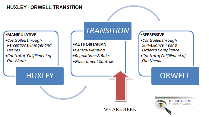 The central state within the United Statism of Amerika has a strategy and a plan to expand its power and control. It is a plan that will transform the United States from Aldous Huxley's "Brave New World" to george Orwell's "1984".
