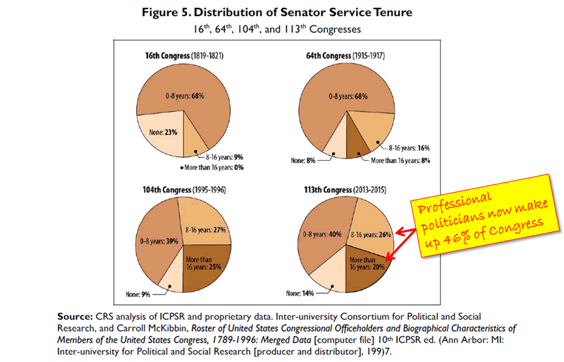 What's really interesting is that the notion of "citizen" legislators has fallen by the wayside. Members no longer serve Congress and go home after relatively short terms as they did for the 18th and early 19th centuries.