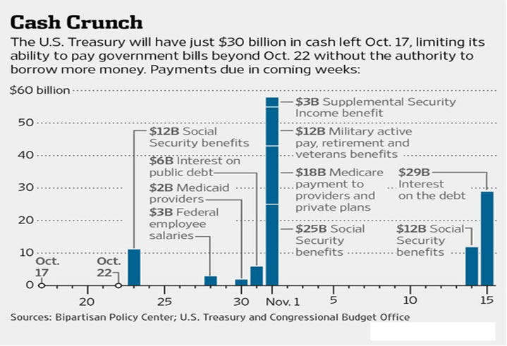 The Treasury Department says it could begin defaulting on U.S. commitments after Oct. 17. Different evaluates propose it could be weeks until the U.S. achieves that focus. Key dates that investors and policy makers are viewing: