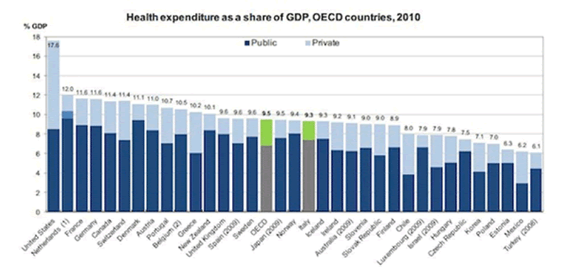One of the biggest problems in the US are medical costs. We spend far more than any other country, almost twice the OECD average. This problem will not be fixed by Obamacare and indeed will only get worse due to the spiralling of price increases between insurance companies and hospitals, given the lack of competition.