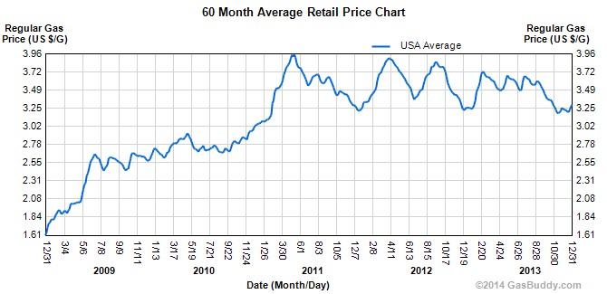 Bakken production has reached 867,000 barrels per day as more and more wells have been drilled to offset the steep depletion rates of the existing wells. The average price per barrel has been $104, despite the frantic propaganda campaign about imminent American energy independence. Tell that to the average Joe filling their tank and paying the highest December gas price in history. My prediction was too pessimistic, but the Bakken miracle will be revealed as an over-hyped Wall Street scam in 2014.