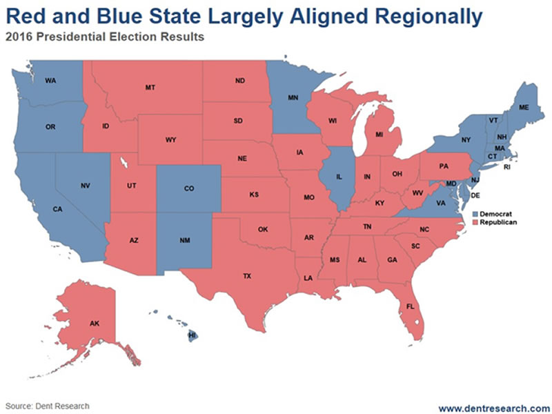 In my November 2016 Leading Edge newsletter, and at our Irrational Economics Summit in October, I forecast that there would be such a red state/blue state split or some level of civil war likely starting by late this year. Our political and social values are more polarized now than any time since the Civil War.