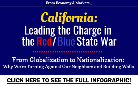 But let’s see what happens when the blue states have their say – as they again have the edge in economic power. California is threatening to go to ballot in 2018 to secede from the union. The red states may have won round one of this civil war, but it’s just getting started.