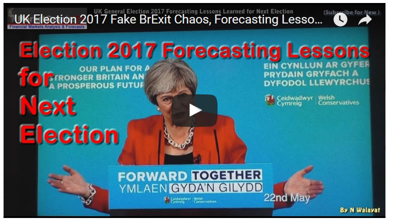 My video of 2nd July detailed 9 key lessons learned from the election of 2017 to be applied to more accurately forecast the NEXT UK general election. Which following reader demand is now repeated in text below.
