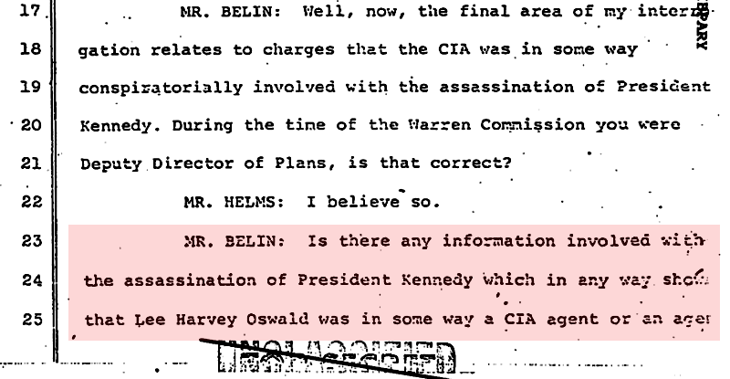 So we will never got the answer questions such as whether Lee Harvey Oswald was an agent of the CIA?