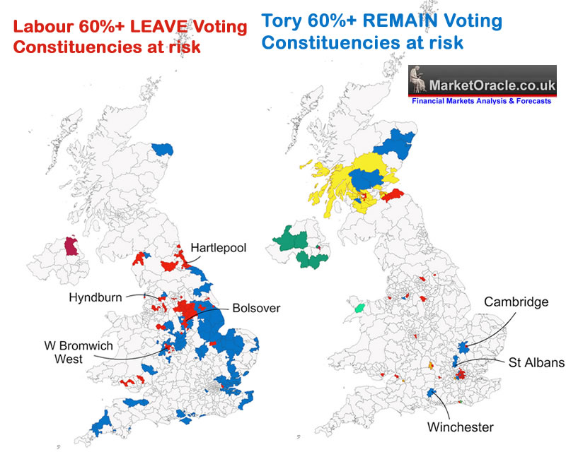 So in determining which way margin seats will swing the primary factor will be if the voters in the marginal's voted for LEAVE and by how large a percentage. For instance the Tories are unlikely to lose any of their existing seats that voted by more than 52% for LEAVE in 2017. Whilst Labour are likely to LOSE heavily in LEAVE leaning Labour marginal's to the Tories. With likely outlier constituencies also to go to the Tories where the LEAVE vote was greater than 60%.