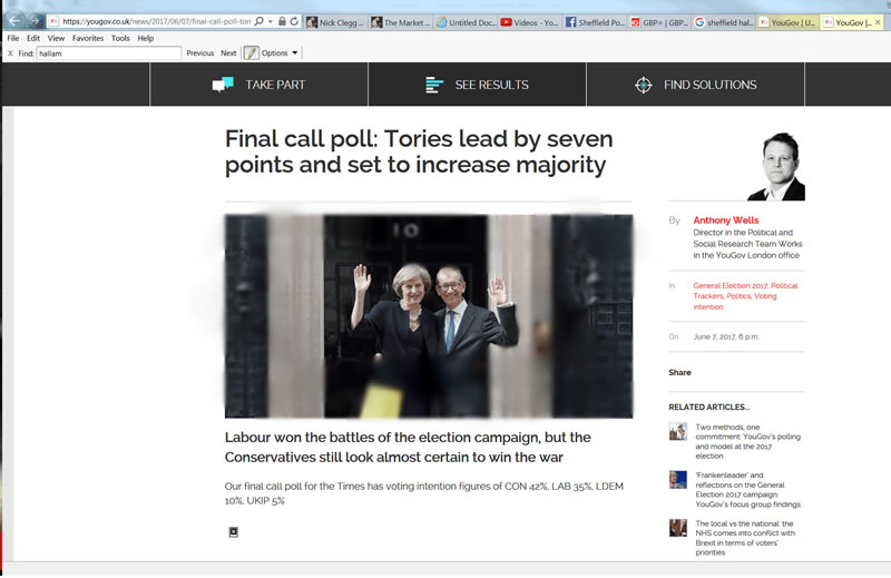 A quick search reveals - "As the dust of the general election settles, many commentators are still stating they didn’t see it coming. But we did." https://yougov.co.uk/topics/politics/articles-reports/2017/06/14/how-we-correctly-called-hung-parliament , Yougov.
