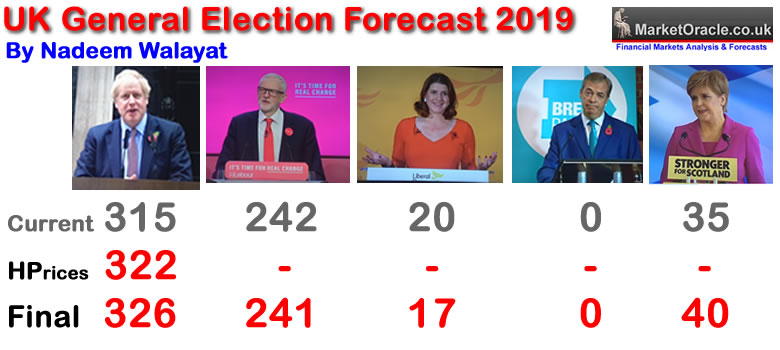 Therefore my FINAL FORECAST CONCLUSION is that the Tories will win 326 seats at the 12th December General Election. And even if they miss this forecast by as many as 4 seats i.e. converge lower towards my core house prices based forecast of 322. Then they will still be able to govern as a minority government. Also note that my final forecast conclusion only deviates from my original UK house prices based forecast of 24th November by just 4 seats i.e. 326 vs 322.