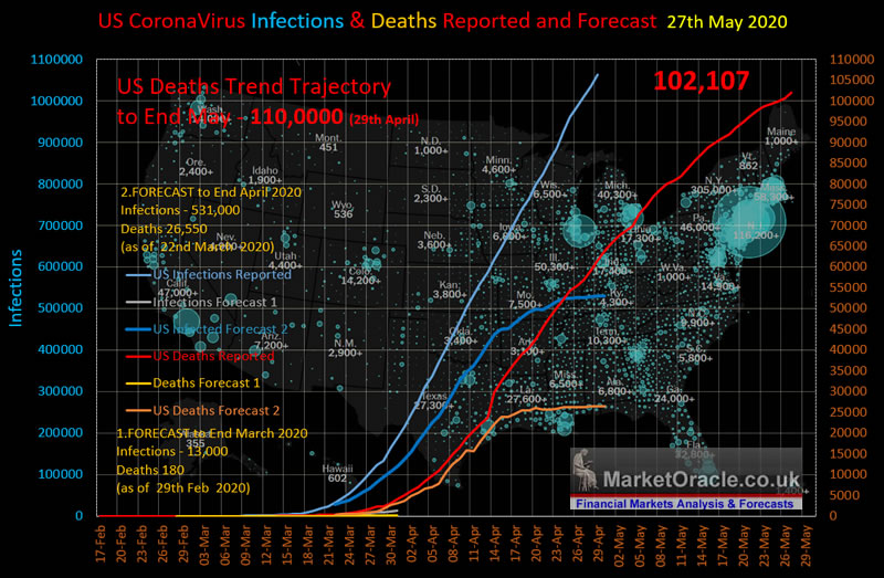 Making over 40 millions workers unemployed in matter of weeks inevitably has societal consequences, throw into this powder keg an unprecedented death toll, far beyond that off all US post WW2 wars combined then all it would would take is one spark, any spark to ignite this powder keg as happened this week. Where the killing of an unarmed black man by a white cop caught on camera was the spark that triggered the angry protests that soon descended into riots and looting on a scale not seen for decades that is fast spreading to more than a dozen cities, which is just a harbinger of worse to come.