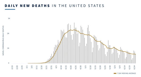 Having escaped my basement office for a week at the Jersey Shore last week, a semblance of normalcy and reality crept back into my life. Reality is not what you see on the boob tube and on twitter. We are a country of 330 million with approximately 127,000 deaths “with Covid-19”, and 43% of those were from nursing homes. Over 30% were from NYC metropolitan area. Other than a few other Democrat controlled urban havens like Chicago, Detroit, Boston and Philly, the rest of the country has been mildly impacted by this virus. The hysteria is unwarranted.